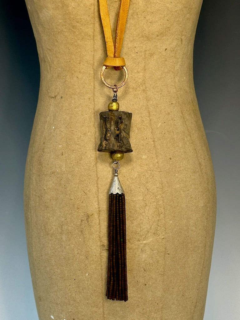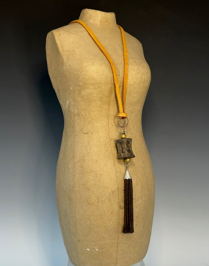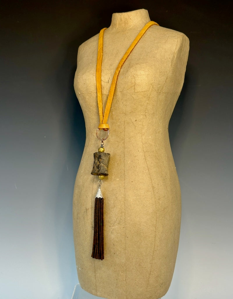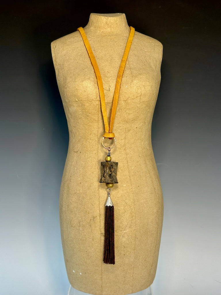 MIXED MEDIA BOHO LONG NECKLACE WITH DEER SUEDE LCN913