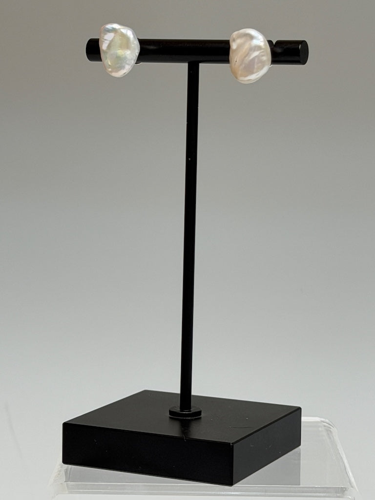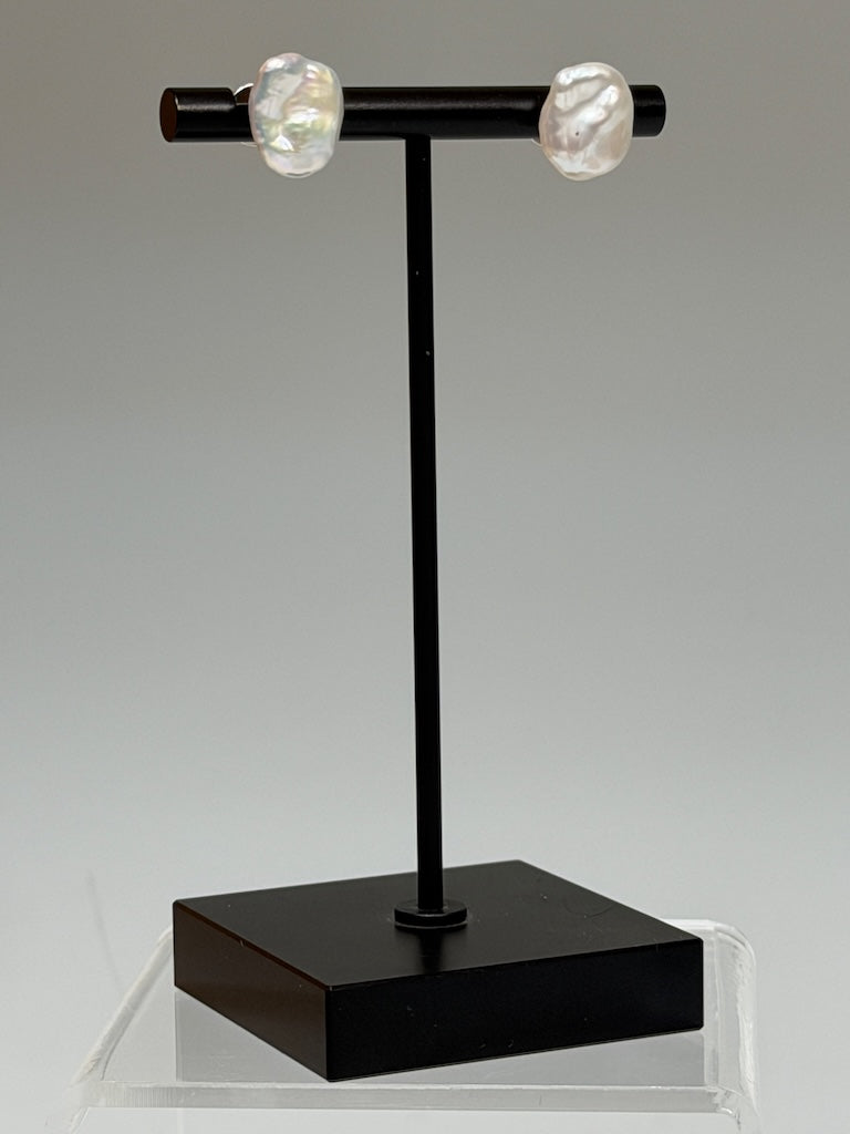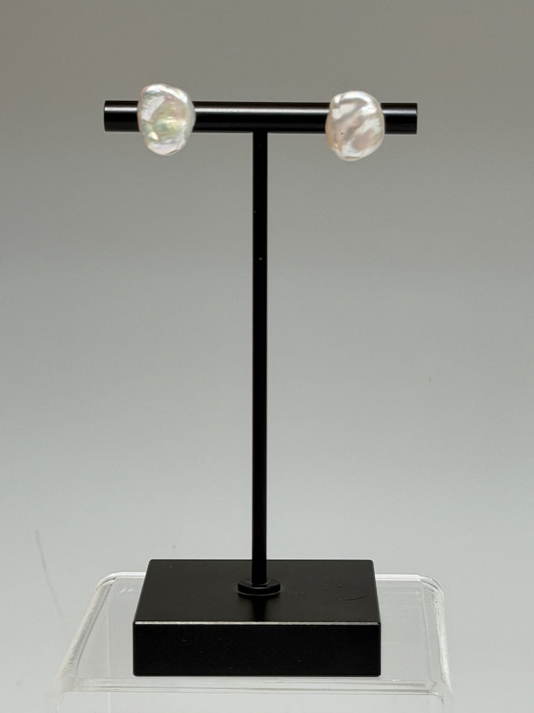 WHITE FRESH WATER KESHI PEARL STERLING SILVER STUD EARRINGS AV2630