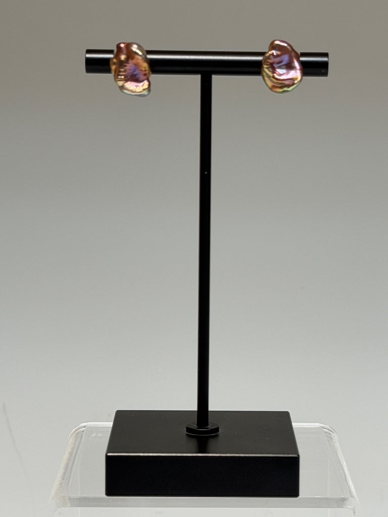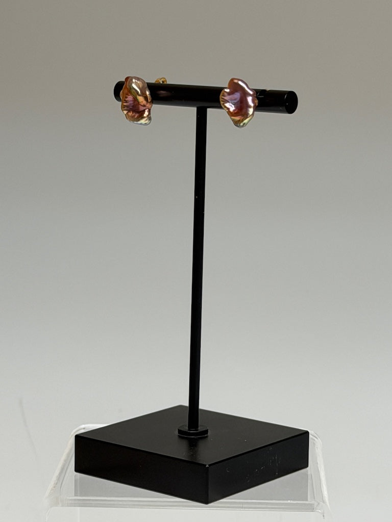 18K YELLOW GOLD NATURAL PINK FRESHWATER KESHI PEARL STUD EARRINGS AV2631