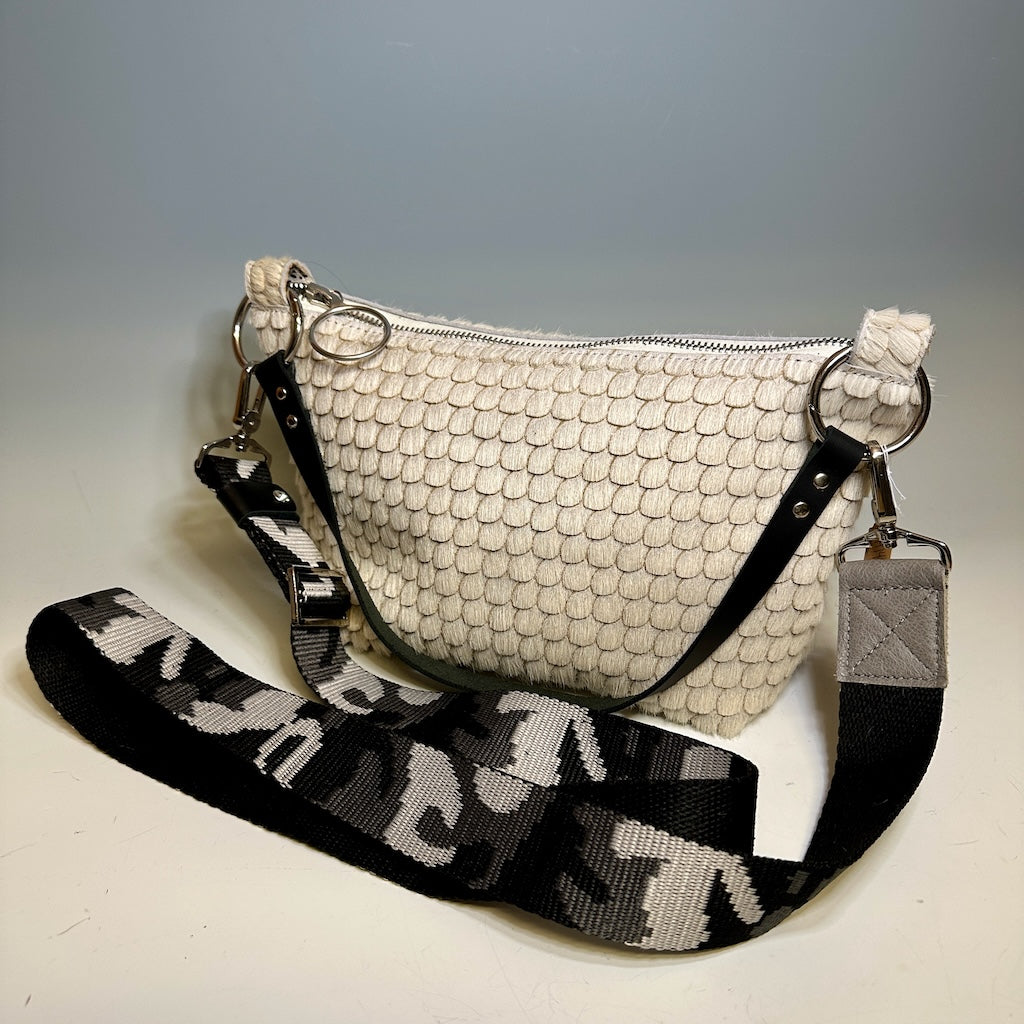 ZIP TOP LEATHER HIDE SHOULDER BAG, WHITE NH142